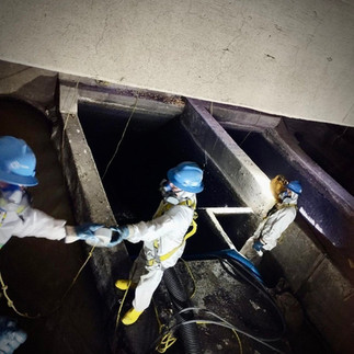 Para estas tareas subterráneas, se implementaron estrictos protocolos de seguridad, incluyendo el monitoreo de atmósferas para detectar gases y el uso de equipo de protección especializado (trajes Tyvek y líneas de vida).