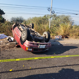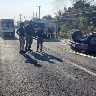 De acuerdo con los primeros reportes de las autoridades viales y cuerpos de emergencia, la conductora de un vehículo particular perdió el control de la unidad, lo que provocó que el automóvil saliera de la cinta asfáltica y terminara volcado sobre su toldo.